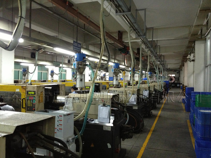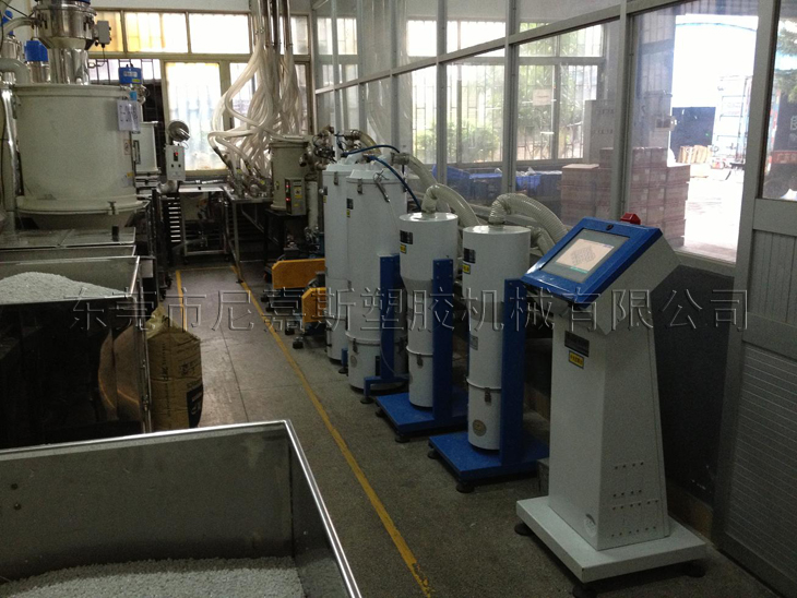中央供料系統(tǒng)是根據(jù)客戶現(xiàn)場機臺的擺放情況對現(xiàn)場原料的用料情況,結(jié)合特有輔機設(shè)計備而設(shè)計的一種能夠?qū)崿F(xiàn)集中供料、集中控制,從而實現(xiàn)全廠無人化不間斷成型作業(yè)的整體性解決方案。