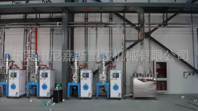 中央供料系統(tǒng)是根據(jù)客戶現(xiàn)場機臺的擺放情況對現(xiàn)場原料的用料情況,結(jié)合特有輔機設(shè)計備而設(shè)計的一種能夠?qū)崿F(xiàn)集中供料、集中控制,從而實現(xiàn)全廠無人化不間斷成型作業(yè)的整體性解決方案。