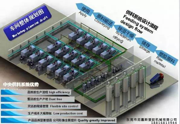 節(jié)能:中央供料系統(tǒng)操作簡易,只需要少數(shù)的幾個(gè)人即可以控制整個(gè)注塑工廠的供料需求,從而減少了大量的勞動(dòng)力成本。其次、減少了在注塑機(jī)旁邊的原料帶及相應(yīng)的輔助設(shè)備、提高了空間的利用率。此外、由于采用了中央供料的方式、相對應(yīng)地減少了很多的單機(jī)設(shè)備,也就節(jié)省了電能及減少維護(hù)費(fèi)用。